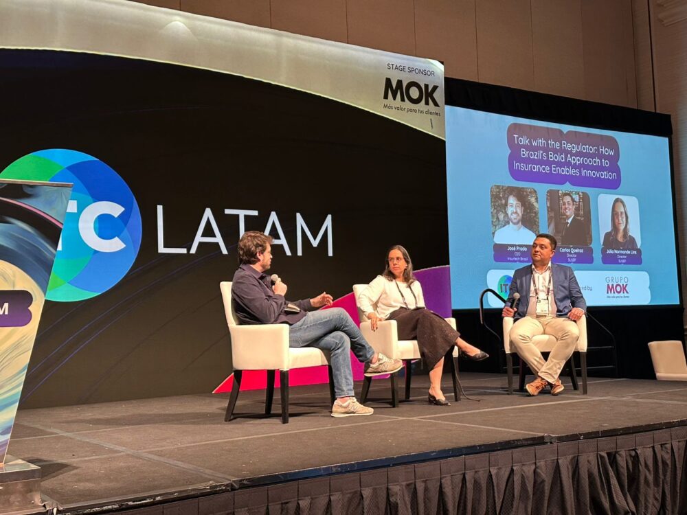 Luego, se desarrolló una charla de alto perfil con los reguladores de Brasil, Carlos Queiroz y Júlia Normande Lins (directores de la SUSEP), moderados por José Prado (Insurtech Brasil). Allí se repasaron los avances del sandbox regulatorio (regulado por ley desde el 2021) y del Open Insurance brasileño, considerado uno de los pocos modelos del mundo formalmente implementados.