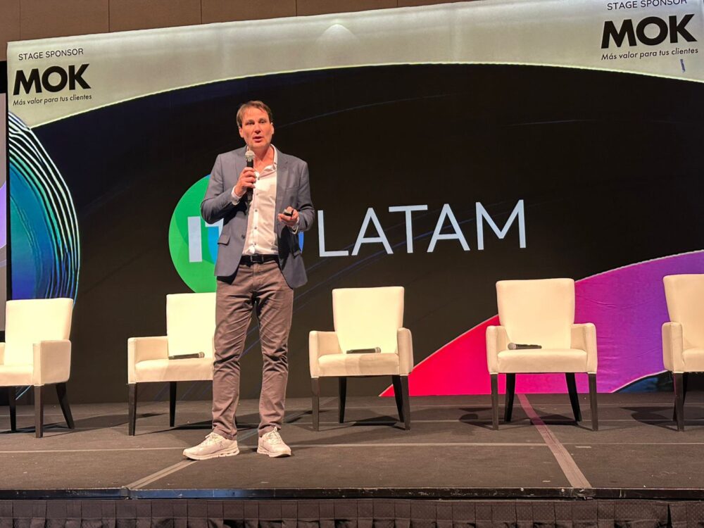 Antes del networking final, Mike Allee (Equisoft) cerró con la charla “Modernizando su modernización”, invitando a repensar los procesos de cambio a la luz de la inteligencia artificial, con un mensaje contundente: “No se trata solo de adquirir nueva tecnología, sino de cambiar la forma de implementarla”.